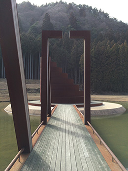 村出身の彫刻家井上武吉先生は、生涯を掛けた仕事として、村全体をフィールドミュージアム、即ち美術館となるよう「森の回廊計画」を構想されました。天に最も近いモニュメントとして、室生村に向き合い、かつ太陽信仰にまつわる太陽の道の軸線上に「山の上のモニュメント」の整備を構想されました。